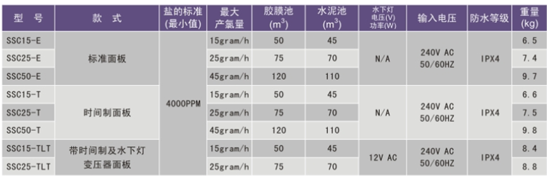 三種款式選擇;產氯量15g、小時、25g/小時、45g/小時.