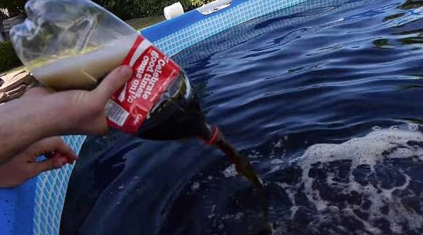 在大夏天“汗蒸季”,除了空調(diào)房,游泳池也是消暑的好去處。不過,你肯定沒他會(huì)玩:美國年輕人塔拉斯·馬克斯穆克在自家簡易泳池里倒入6800升可樂、大量曼妥思以及冰塊,打造出了“沸騰”可樂泳池。