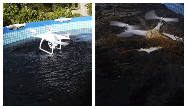 他還啟動(dòng)無人機(jī)拍攝這一“奇景”,不料無人機(jī)“墜毀”在可樂池里。