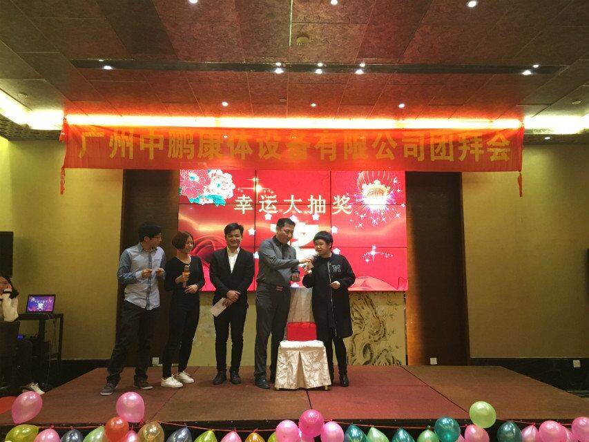 時(shí)光飛逝,歲月如梭,轉(zhuǎn)眼間忙碌的2016年已過去,充滿期待的2017年向我們走來。新的一年,孕育新的目標(biāo)和希望。廣州中鵬康體設(shè)備有限公司2017年春節(jié)聯(lián)歡會(huì)于在廣州半島豪苑隆重舉行,中鵬全體員工,與公司領(lǐng)導(dǎo)歡聚一堂,共度聯(lián)歡。公司領(lǐng)導(dǎo)祝賀并發(fā)言,公司領(lǐng)導(dǎo)為優(yōu)秀員工頒發(fā)了證書和獎(jiǎng)品,鼓勵(lì)他們戒驕戒躁,在新的一年起到模范帶頭作用,做出新的貢獻(xiàn)。